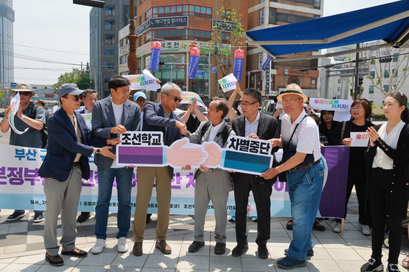 초량 일본대사관 앞에서 여러 시민단체들과 조선학교차별 반대 기자회견을