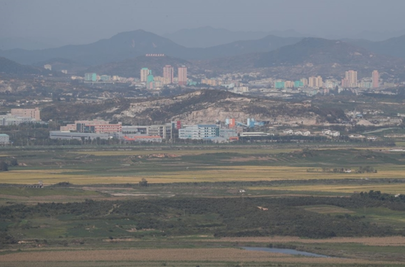 9·19 평양 공동 선언 1주년인 19일 경기 파주시 서부전선 비무장지대(DMZ) 도라전망대에서 익어가는 가을 들녘 뒤로 개성공단과 개성 시내가 보이고 있다. 연합뉴스