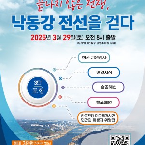 끝나지 않은 한국전쟁, 낙동강 전선을 걷다 포항편3월 29일 (토) 8시 동래역 3번출구 공영주차장 출발 회비 3만원 신청링크 https://forms.gle/bb5gHV2KDMk9uoJ26낙동강 전선의 마지막 입니다.한국전쟁 당시 낙동강 전 . . .