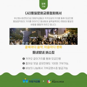 새롭게 진행되는 통일음악회 골목마다 음악, 마음마다 평화 동네방네 버스킹 부산형사회연대기금 카카오가치같이와 함께 드디어 모임함이 오픈됩니다.통일음악회의 자립과 평화와 통일을 향한 마음이 지속적으로 이어질 수 있게 많은 분 . . .