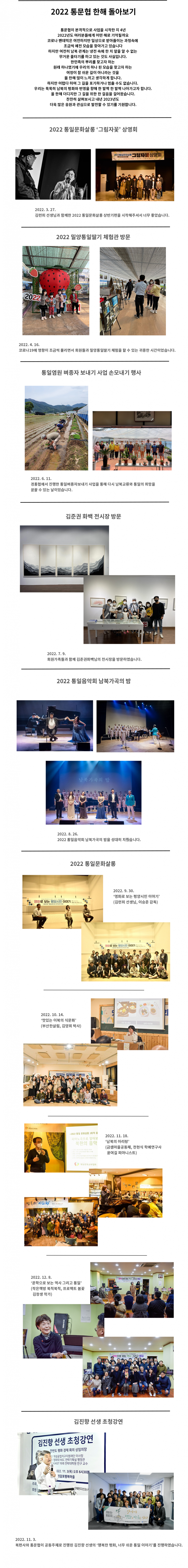 2022 통문협 한해 돌아보기 페이지 정보 작성자 통문협 조회1,467회 작성일 22-12-15 00:37 본문 2022 통문협 한해 돌아보기일 년을 함께 열심히 살아 주신 모든 분들정말 감사합니다. 이전글통일딸기따기체험 23.03.20 다음글딸기밭에서 평화를 노래하다 - 경통협 2022통일음악회 22.10.12 목록